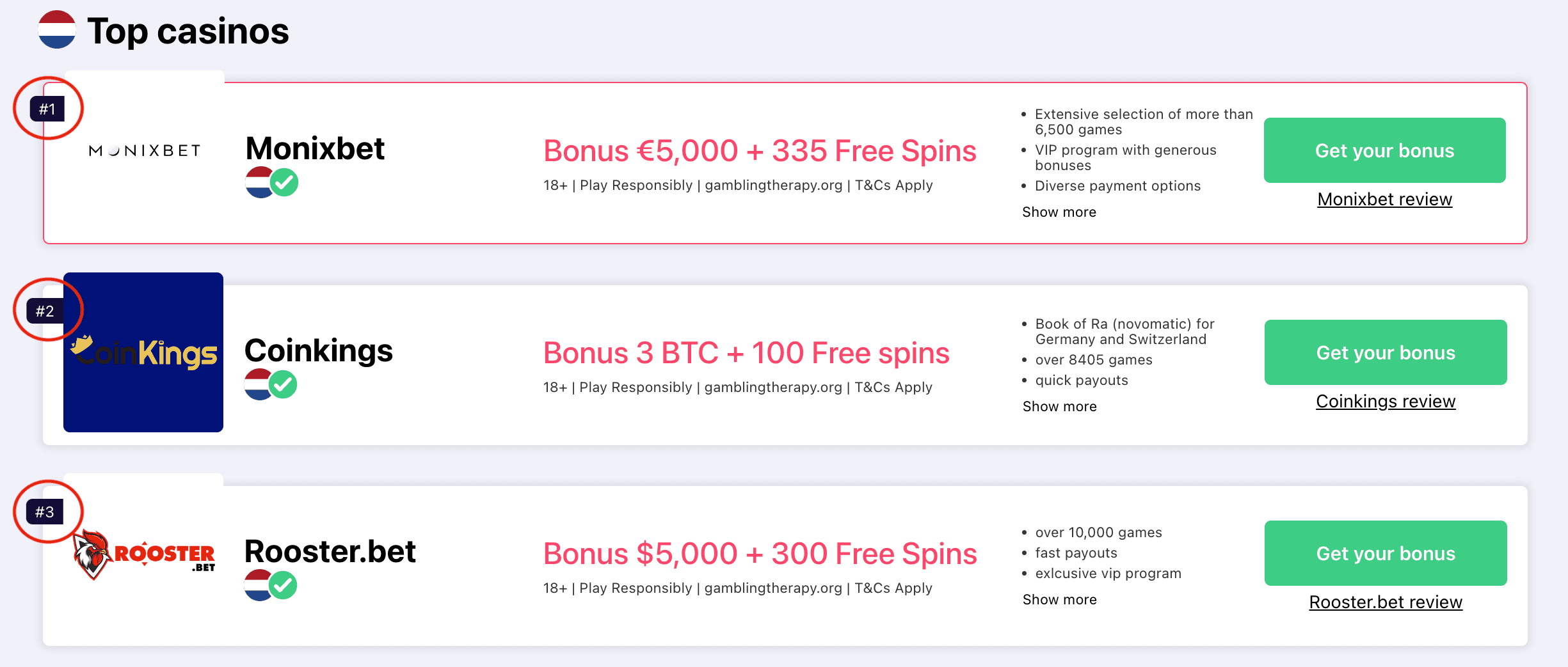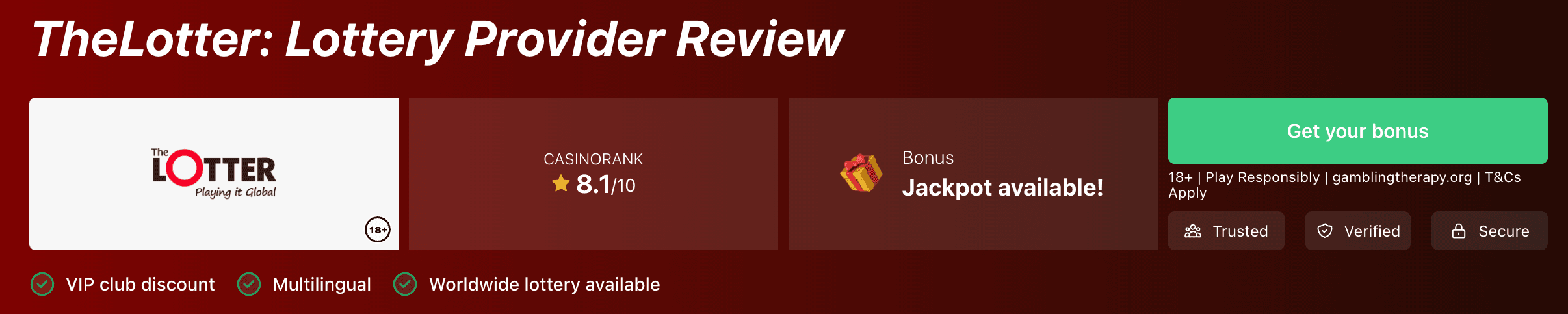 Cuando se trata de mostrar bonos, nuestro enfoque es práctico; descubrimos nuevas promociones directamente en los sitios web de nuestros socios o colaboramos estrechamente con ellos para obtener las ofertas más ventajosas para nuestros usuarios. Esta estrecha relación con los casinos de lotería nos ayuda a mantener la frescura de nuestro contenido. Aun así, no influye en nuestra honestidad: la integridad de nuestras reseñas se basa en análisis objetivos y hechos.